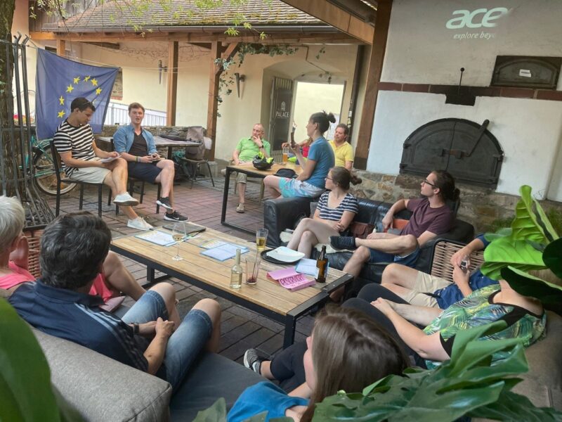 Von der EU-Batterieverordnung bis zur vermeintlichen „Polykrise“: Malte Gallée (29), jüngster Europaabgeordneter Deutschlands auf Radtour durch die Oberpfalz, diskutierte alle Fragen seiner Zuhörer. Die Veranstaltung im „Beanery Kitchen“ hatte der Grünen-Kreisverband erstmals zusammen mit den Jungen Europäischen Föderalist:innen (JEF) organisiert, einem überparteilichen, politischen und gemeinnützigen Jugendverein, der für ein vielfältiges, solidarisches und subsidiäres Europa steht. Fabian Puckschamel von den JEF moderierte die Veranstaltung.